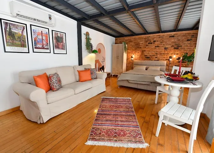 Bu Cute Retro Home Balcony AC Galata dairesi, Tarihi Galatasaray Hamamı'nın yakınındadır.